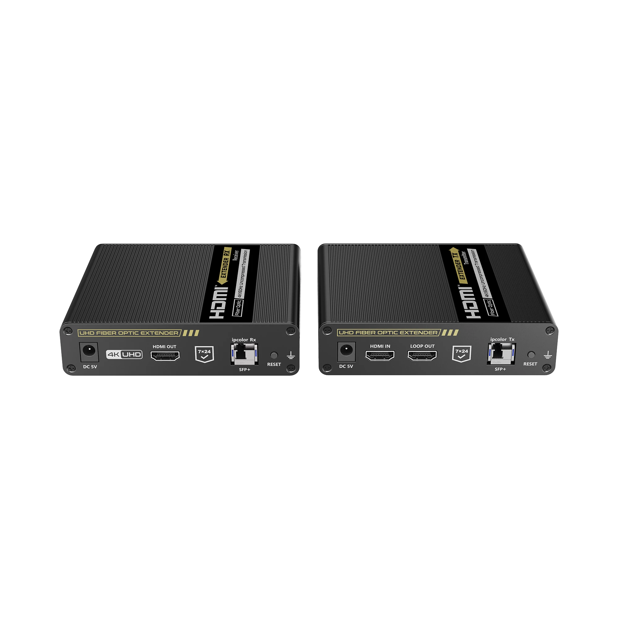 KIT EXTENSOR HDMI POR FIBRA ÓPTICA 10G A 40 KM / RESOLUCIÓN 4K@60HZ/ MONOMODO (SMF) / IPCOLOR PIXEL / CERO LATENCIA/ SIN COMPRIMIR / S/PDIF / ARC / RS-232 / SALIDA LOOP / TRANSCEPTORES ÓPTICOS (GBIC) INCLUIDOS / IR BIDIRECCIONAL.