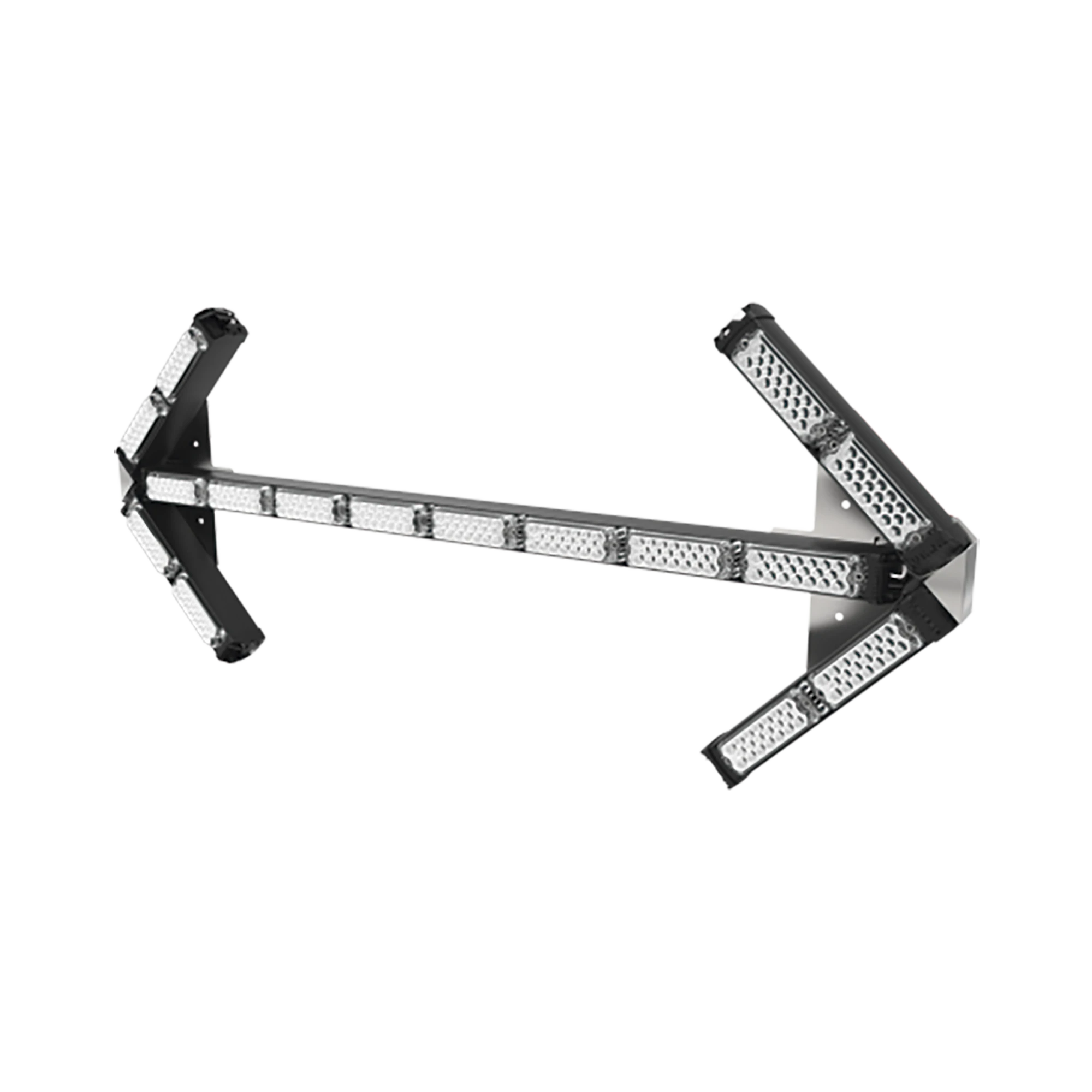 BARRA DE LUCES LED EN FLECHA DE DOBLE CABEZAL EN UNA SOLA PIEZA DIRECTOR DE TRÁFICO DE 53.8 PULGADAS, ILUMINACIÓN COLOR ÁMBAR.