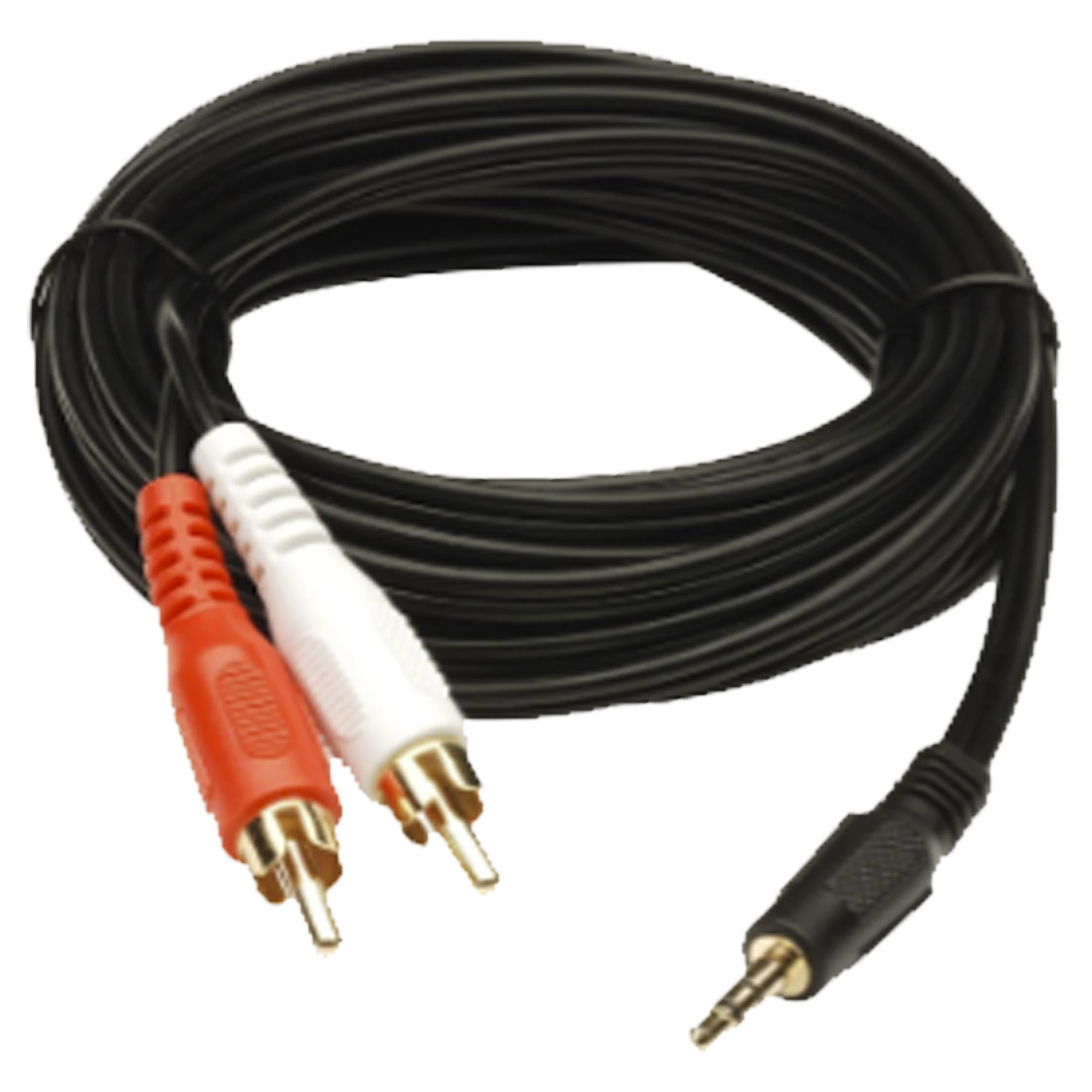 CABLE AUDIO PREMIUM JACK 3.5MM A 2 RCA / 10 METROS / FLEXIBLE / DOBLE BLINDAJE / TRANSFERENCIA DE AUDIO SIN PÉRDIDAS / CAJA DE ALEACIÓN DE COBRE / AMPLIA COMPATIBILIDAD / DISEÑO DURADERO.