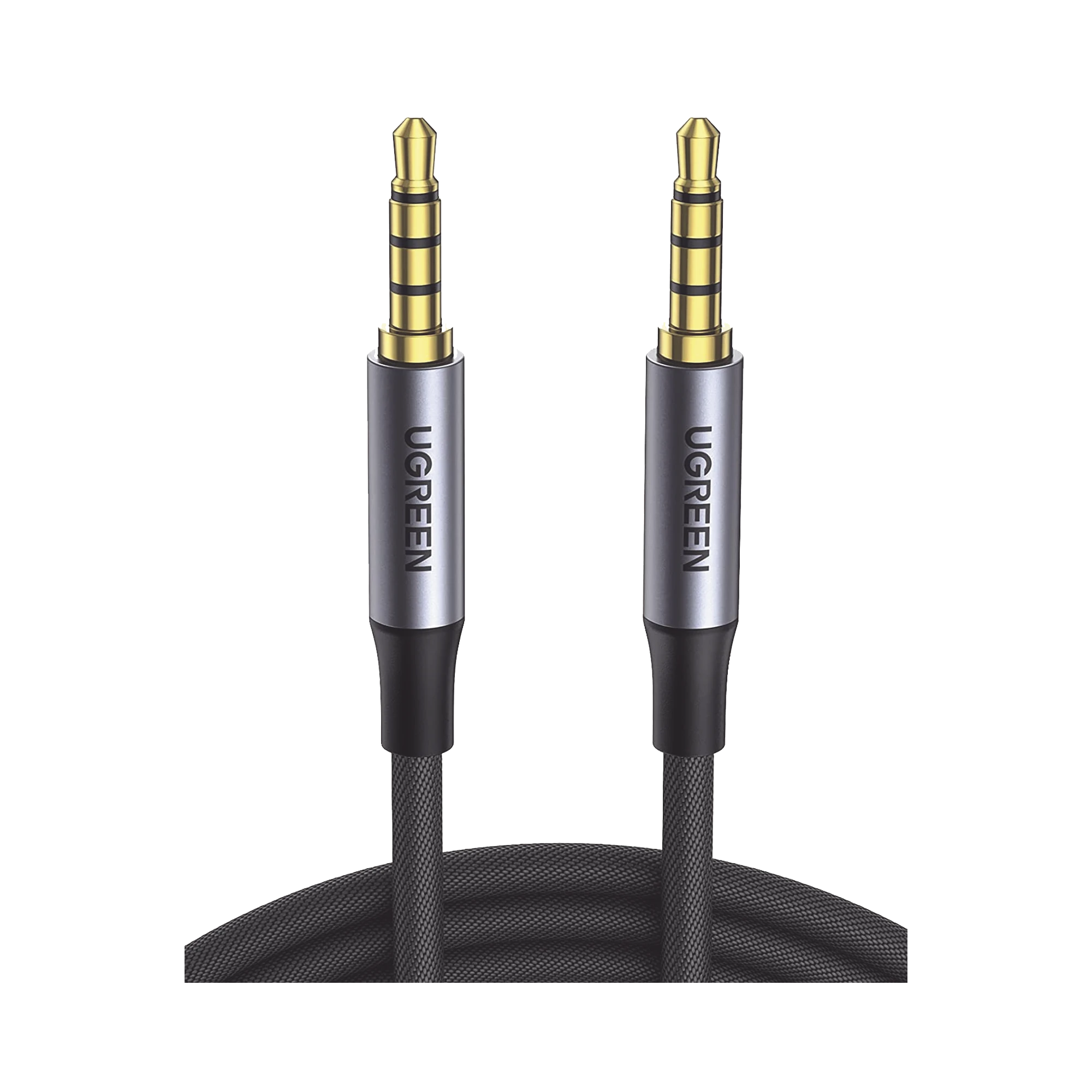 CABLE AUXILIAR DE 3.5MM / CABLE AUDIO ESTÉREO / NÚCLEO DE ALAMBRE DE COBRE ESMALTADO / CARCASA DE ALUMINIO AZUL + NYLON TRENZADO / SOPORTA MICRÓFONO / 2 METROS