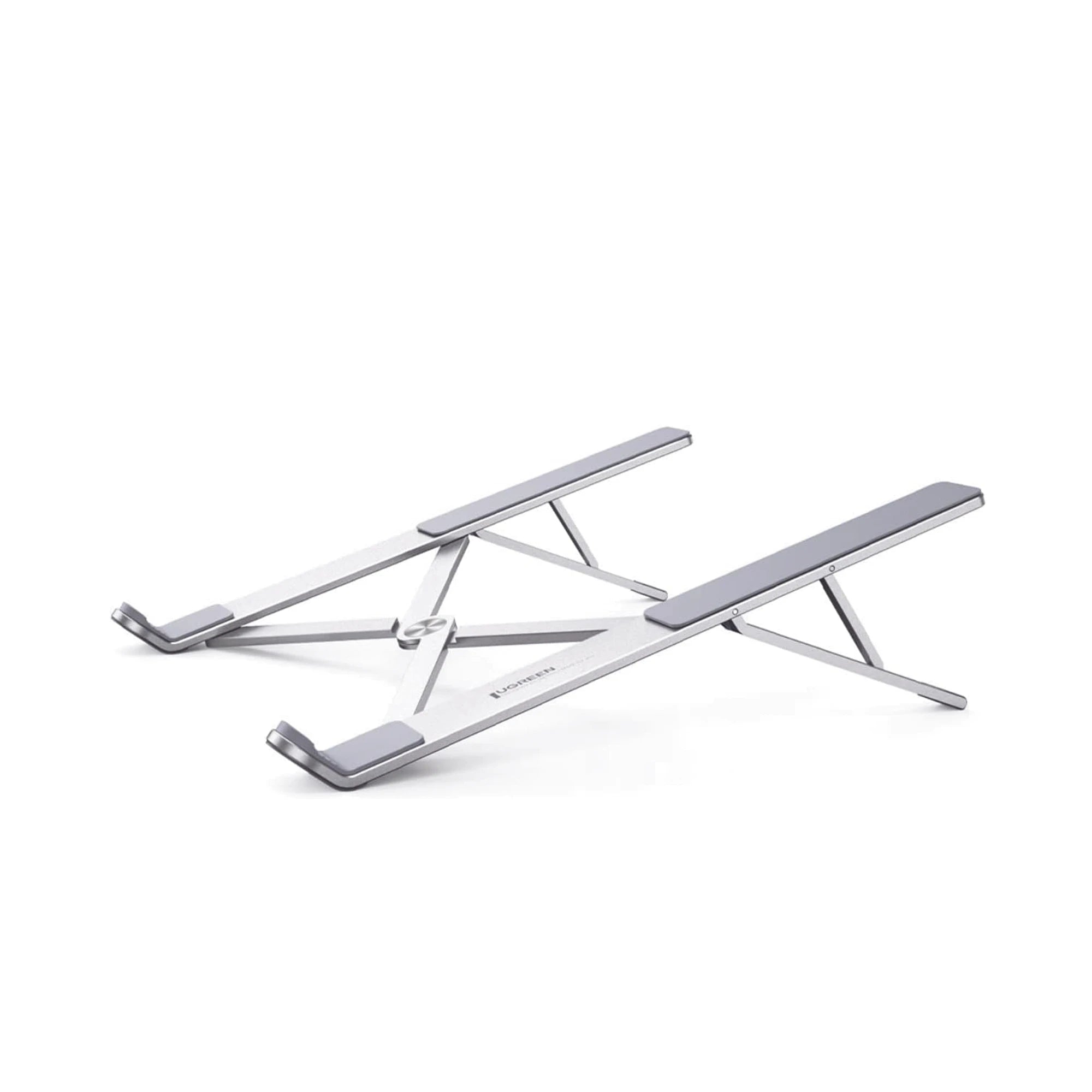 SOPORTE PORTÁTIL DE ALUMINIO / AMPLIA COMPATIBILIDAD DE 11-17.3" / AJUSTE DE ALTURA 46.5 MM-136.5 MM / CAPACIDAD DE CARGA DE 5 KG / DISEÑO PLEGABLE / MATERIAL DE ALEACIÓN DE ALUMINIO + SILICONA / DISEÑO DE PROTECCIÓ