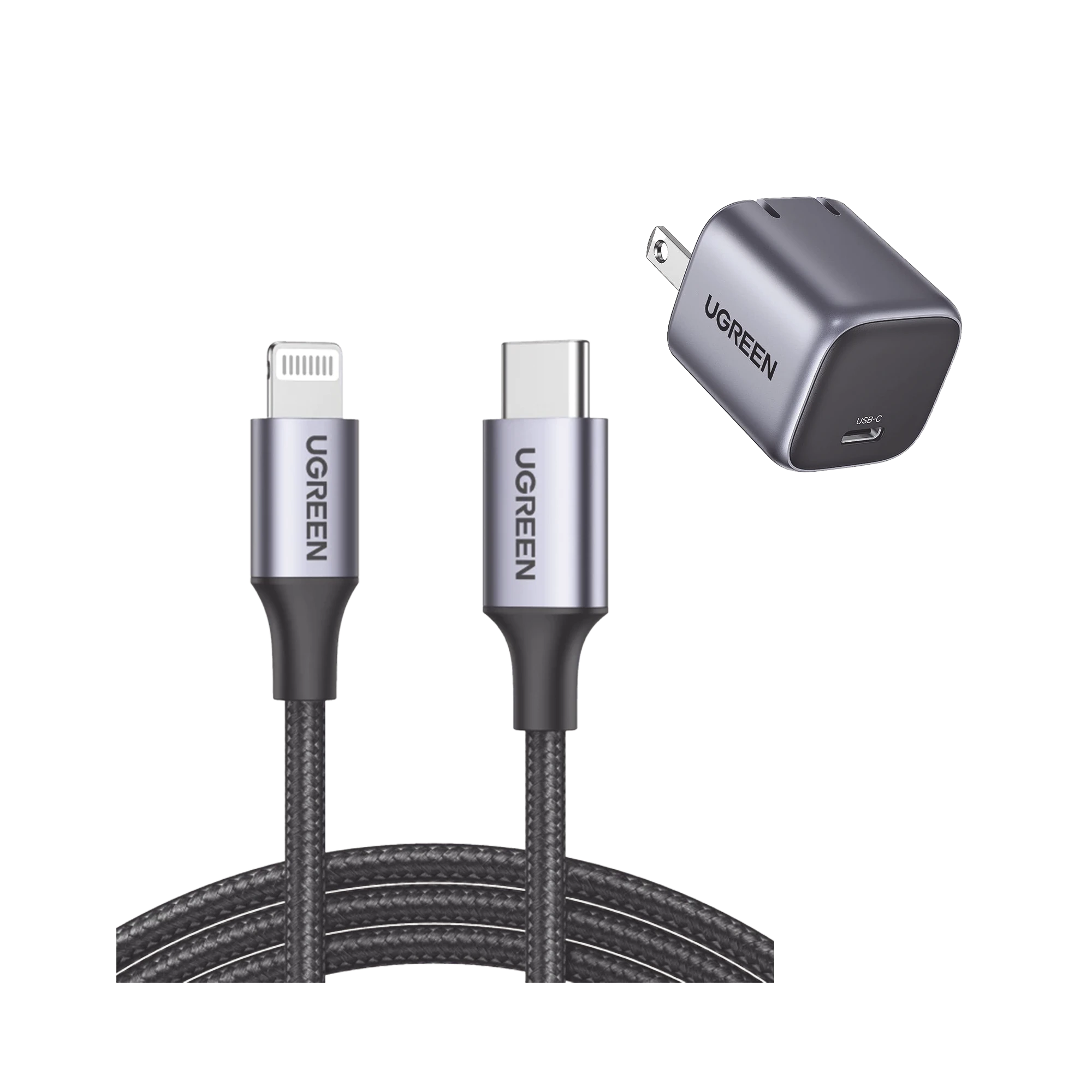 KIT DE CARGADOR DE 20W TECNOLOGÍA GAN Y CABLE LIGHTNING CERTIFICADO MFI / INCLUYE 1 PZA. 90902 / 1 PZA. 60759 / TECNOLOGÍA INTELIGENTE / CARGA RÁPIDA / CABLE DE 1 METRO / CARCASA DE ALUMINIO / NYLON TRENZADO
