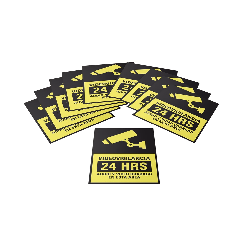 ETIQUETA DE VIDEOVIGILANCIA EN VINIL ADHESIVO MATE / PAQUETE CON 10