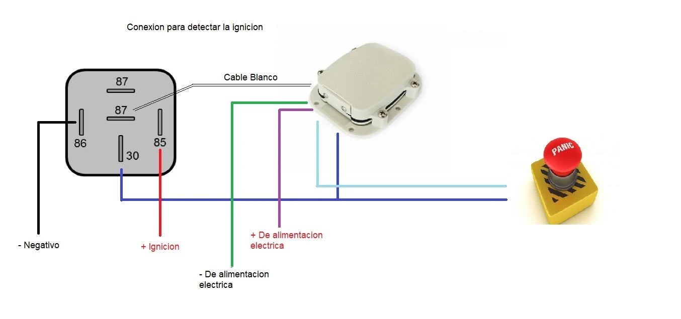· Acepta señales de serie (TTL) de sensores de dispositivos externos para botón de pánico tipo switch.