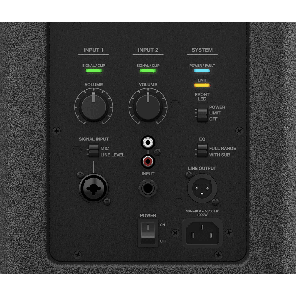 Conecta fácilmente varias fuentes de audio mediante el mezclador integrado con dos entradas combo XLR-1/4 pulg. con alimentación fantasma, entrada auxiliar de 1/4 pulg. y 1/8 pulg. (3,5 mm), además de transmisión Bluetooth®, y accede a los preajustes de ecualizador del sistema y ToneMatch , volumen, tono y reverberación mediante los controles iluminados.