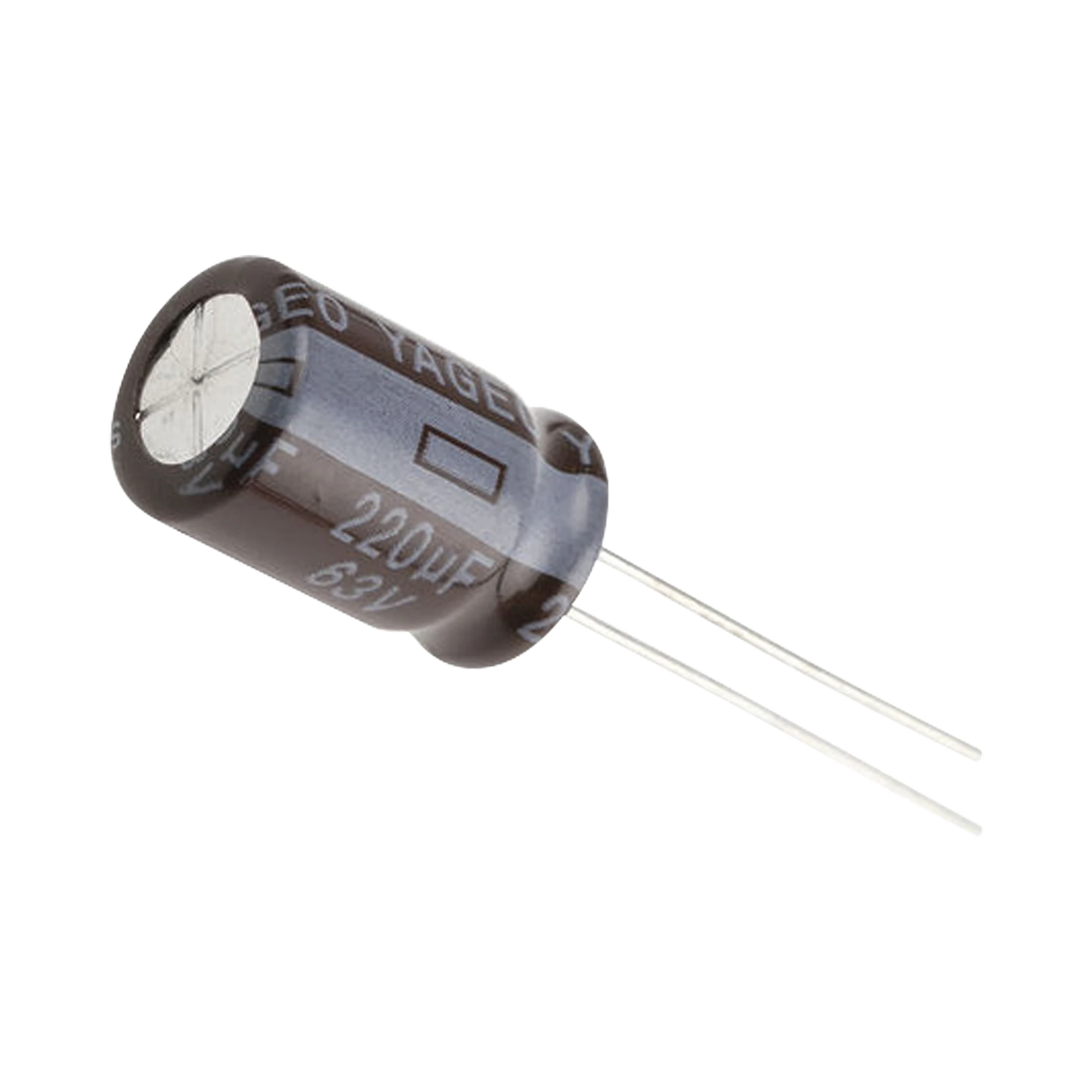 CAPACITOR ELECTROLÍTICO DE ALUMINIO DE 220 ΜFD A 63 VCC.