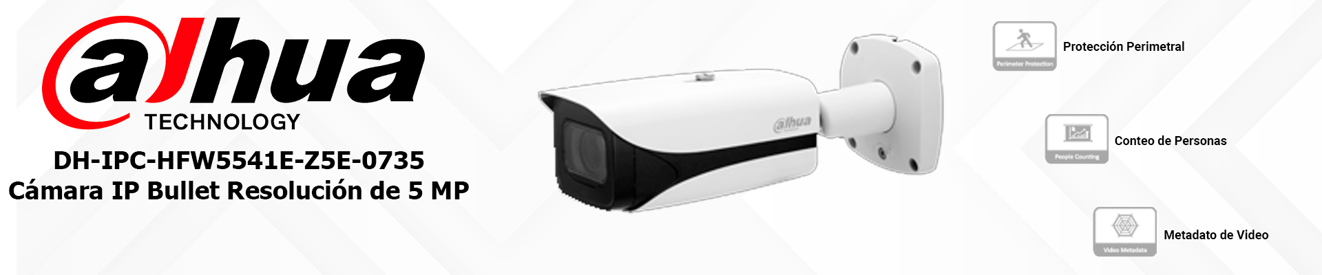 DAHUA DH-IPC-HFW5541E-Z5E-0735 - CÁMARA IP BULLET RESOLUCIÓN DE 5 MP/ LENTE MOT. 7 A 35MM/ IR 130 MTS/ IA WIZMIND/ DETECCIÓN FACIAL/ PROTECCIÓN PERIMETRAL/ CONTEO DE PERSONAS/ STARLIGHT/ EPOE/ WDR/ H.265+/ E&S ALARMA/ E&S AUDIO/ / IP67/ IK10