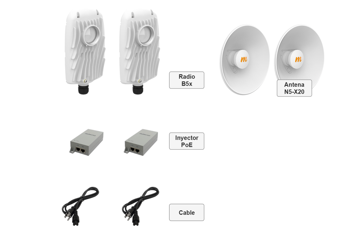 Kit radios B5x más inyectores PoE, cables de alimentación y antenas