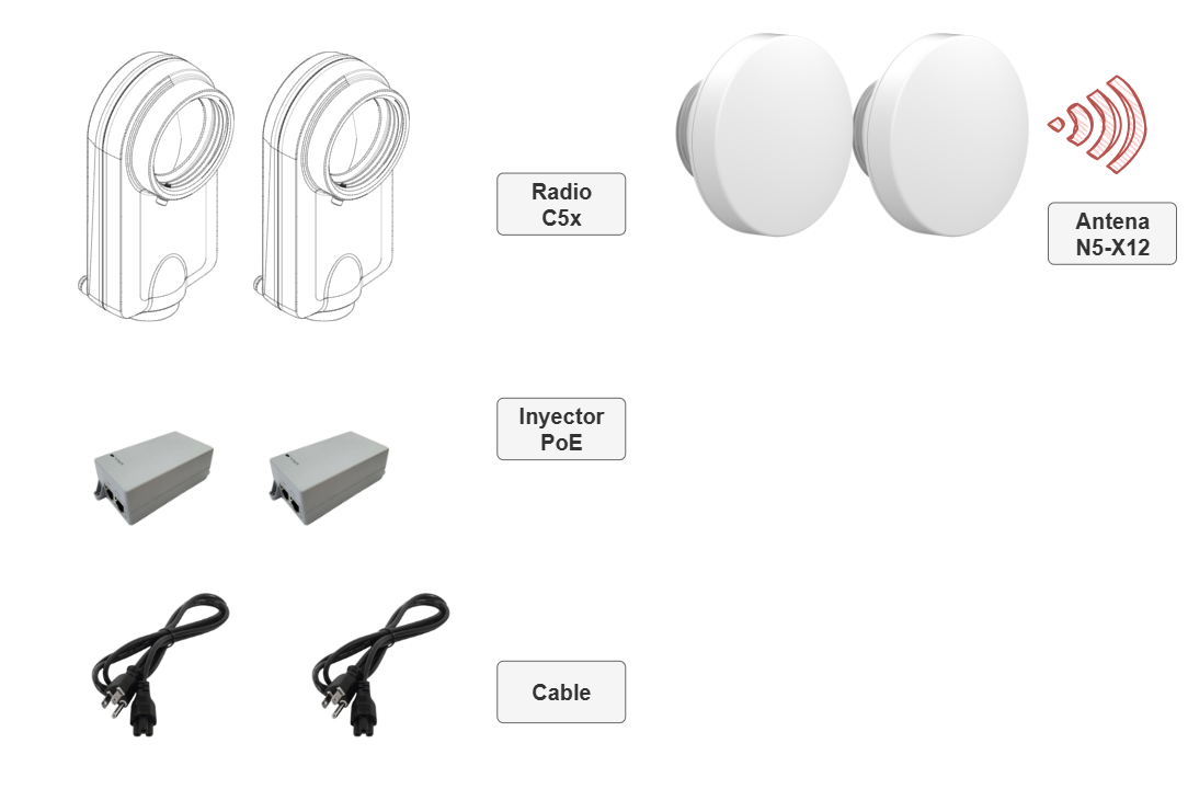 Kit radios C5x más inyectores PoE, cables de alimentación y antenas