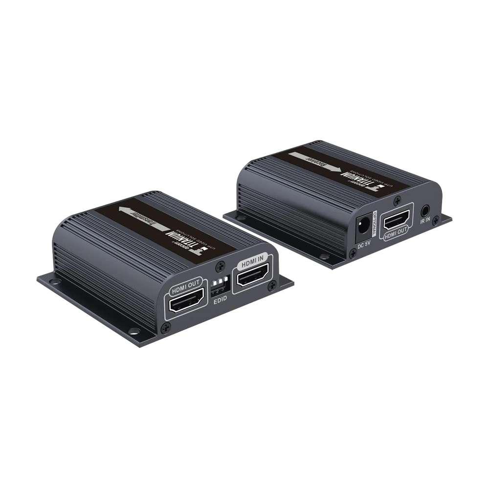 El kit extensor TT-372-EDID transmite señales HDMI a 1080P sobre cable de red hasta 60m CAT6, es compatible con la transmisión de señales a control remoto cuenta con loop de salida, con gran calidad de imagen.