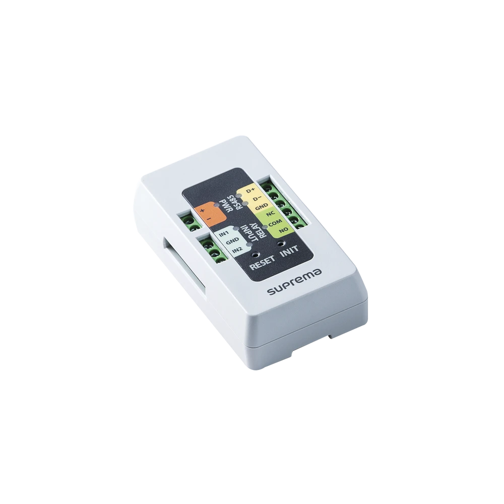 El SIO2 ofrece seguridad a su puerta, utilizando una comunicación encriptada, cuando es combinado con los lectores de Suprema. Ultra compacto, lo que permite instalarlo donde usted lo requiera.
