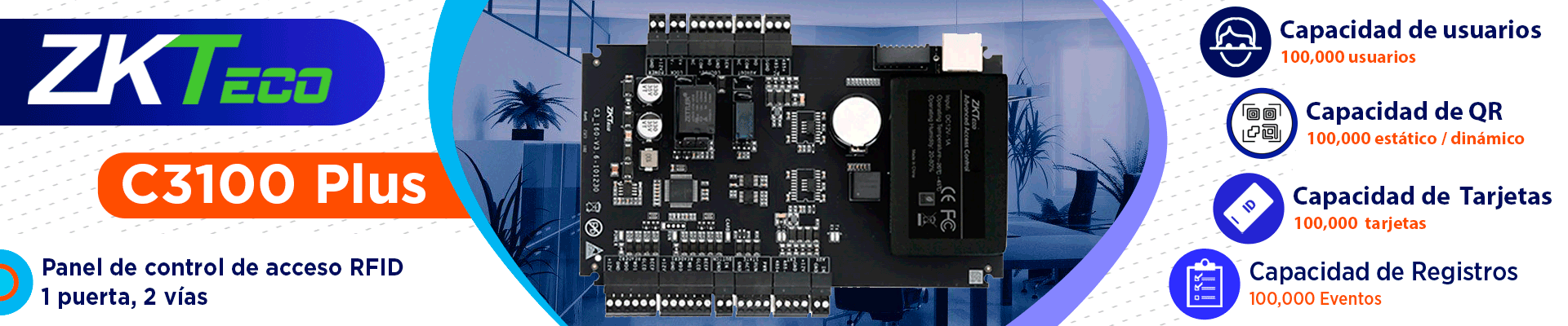 ZKTECO C3100PLUS PACKAGE B - PANEL DE CONTROL DE ACCESO RFID, 1 PUERTA, 2 VÍAS, CAPACIDAD PARA 100,000 USUARIOS Y TARJETAS, CAPACIDAD DE CÓDIGO QR, PUSH SDK #PANEL