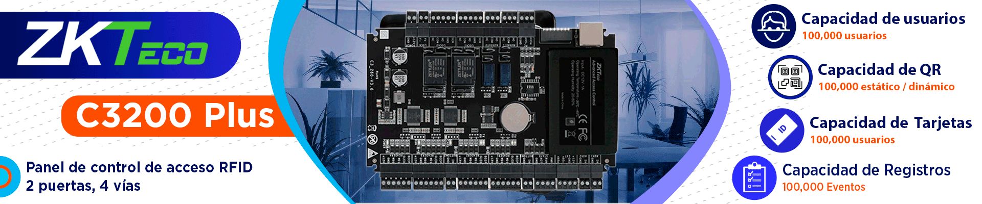 Nombre: ZKTECO C3200PLUS- PANEL DE CONTROL DE ACCESO RFID, 2 PUERTAS, 4 VÍAS, CAPACIDAD PARA 100,000 USUARIOS Y TARJETAS, CAPACIDAD DE CÓDIGO QR, PUSH SDK #PANEL
